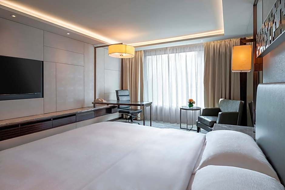 Offering amazing views of Victoria Harbor and Hong Kong skyline, this room comes with a 46-inch flat-screen TV, Bose sound system, capsule coffee machine, Executive Lounge access and a spacious marble bathroom with a pillow menu.